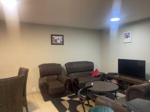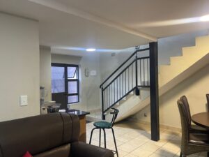 Three bedroom town house at the back , spacious lounge overlooking the kitchen on the bottom, three bedrooms on top all with BIC , full bathroom with shower.